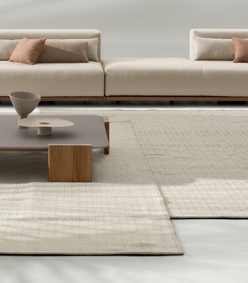 Plain Air地毯完善了Ditre Italia的户外区域,为开放空间带来了家庭起居的温暖。 其材质纹理再现了天然纤维编织的美感,可完美融入周围风景。